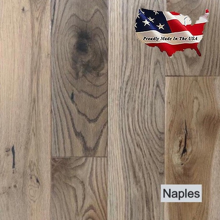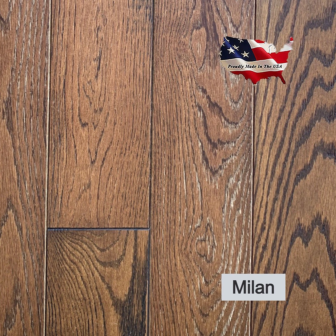 The Tuscan Collection is a premium 5” x 3/4” x RL Solid Oak hardwood flooring in two traditional finishes. The Tuscan Collection is a beautifully crafted Oak species with a Wire Brushed Finish on the Milan made with Red Oak; and a Smooth finish on the Naples in White Oak. The Oak species exhibits a linear grain that accentuates the knots and character in the wood. Both colors in this collection utilize Bona® High Durability Stains & Finishes. They are also all proudly milled in our factory here in the USA!